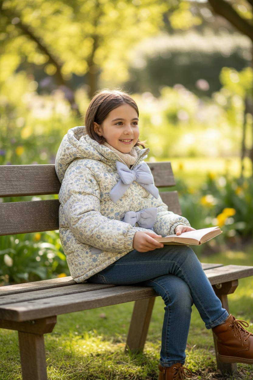 Floral Winter Coat with oversized bows