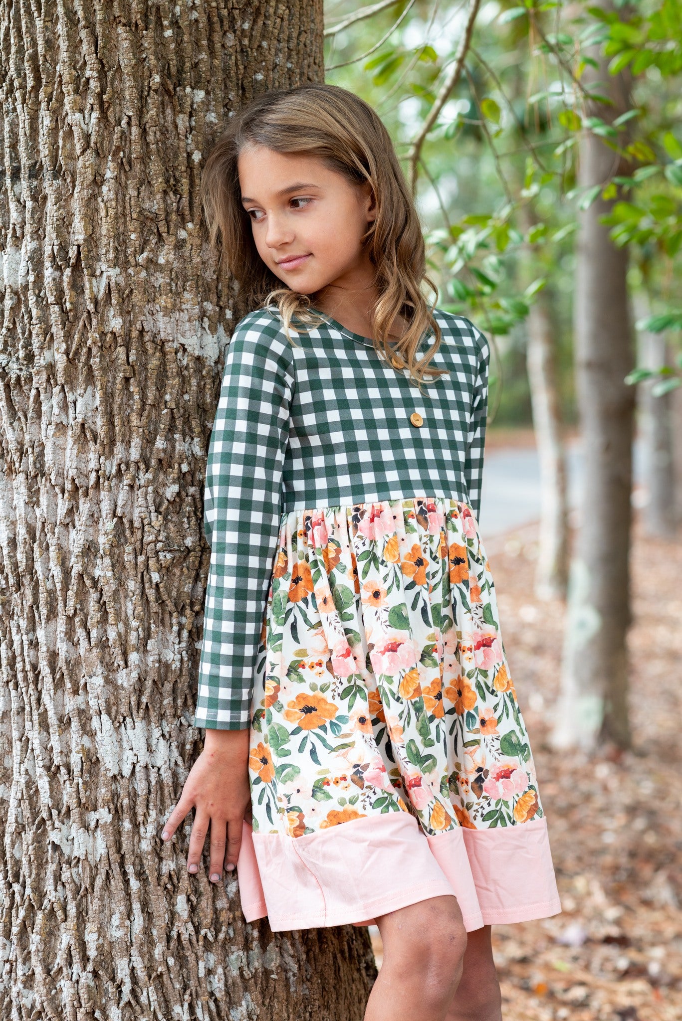 It’s all in the details... from delicate buttons to charming plaid, lovely florals, and a perfect pop of pink! 🌸 This versatile dress is a dream for both fall and spring, offering a blend of comfort and style. The best part? It’s ready to ship right now! With limited sizes and a steal at just $32, this beauty won’t last long. Don’t wait to add this gem to your little one's wardrobe!