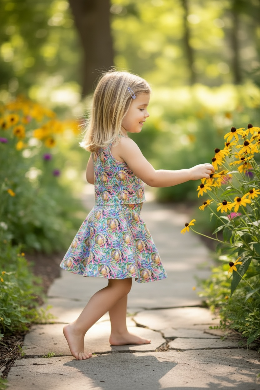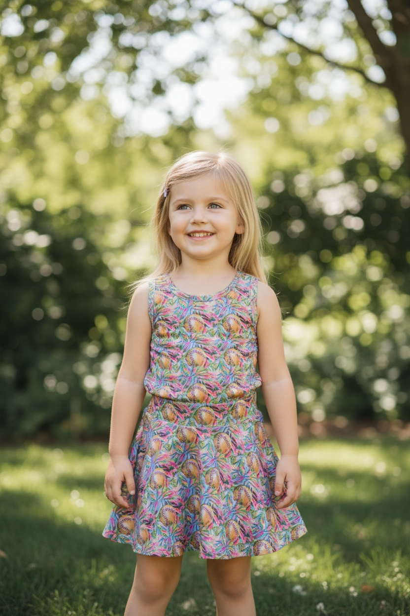 The Home Run Honey set is the perfect outfit for your little all-star who loves sunshine, sweet treats and cheering on her favorite team! Designed with a playful ball-inspired print, this set subtle sporty accents that make it a standout piece for game days and team celebrations. Has built in shorties. Comes in green, softball print, and baseball print.