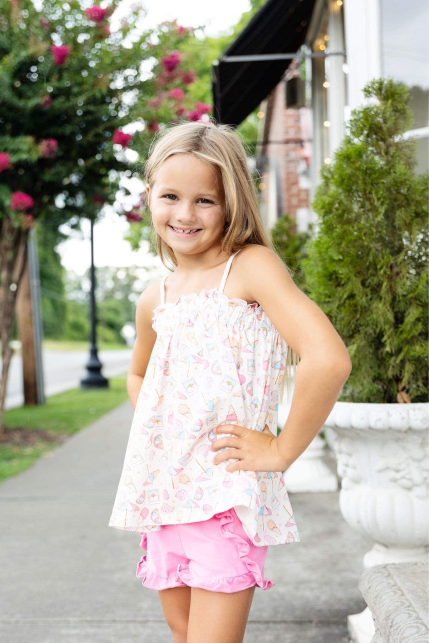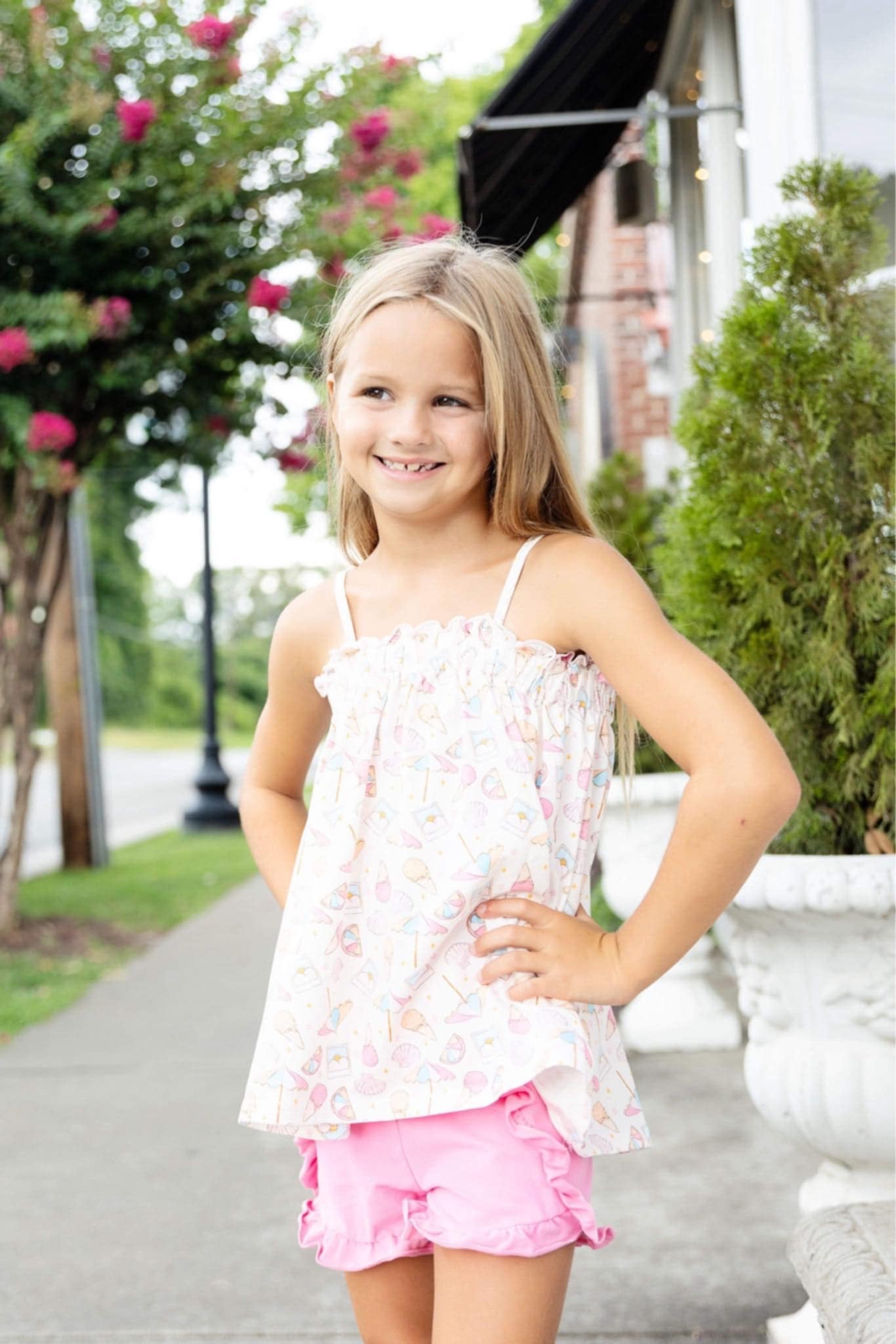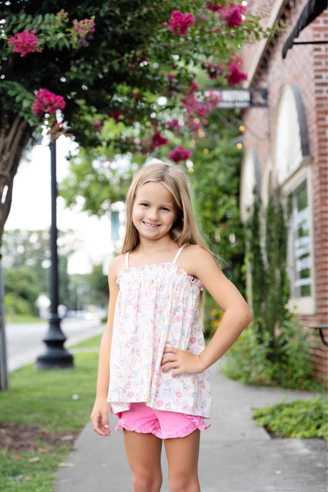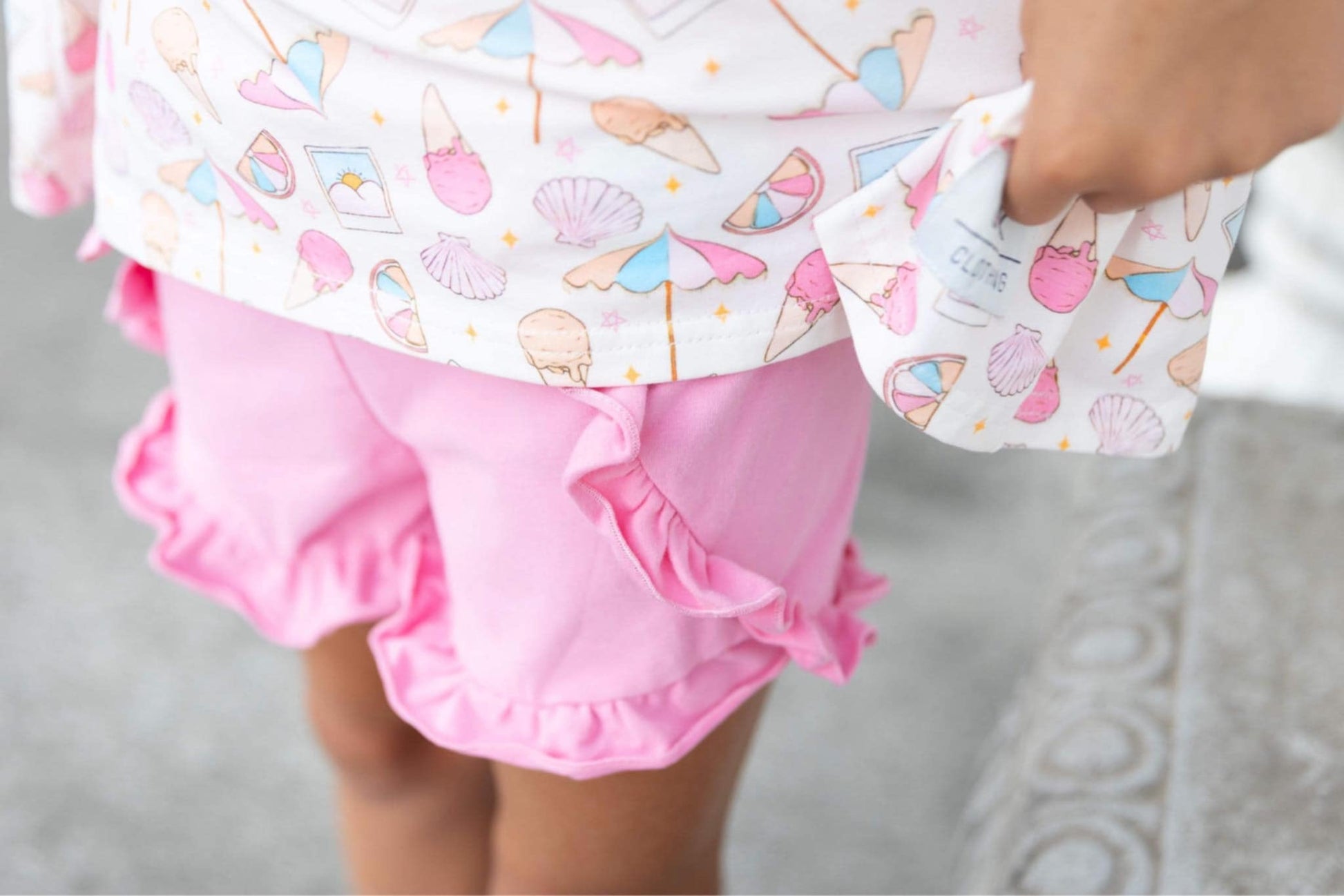 Set includes tunic top and Pink Ruffle shorties in an all new style for Summer 2024!