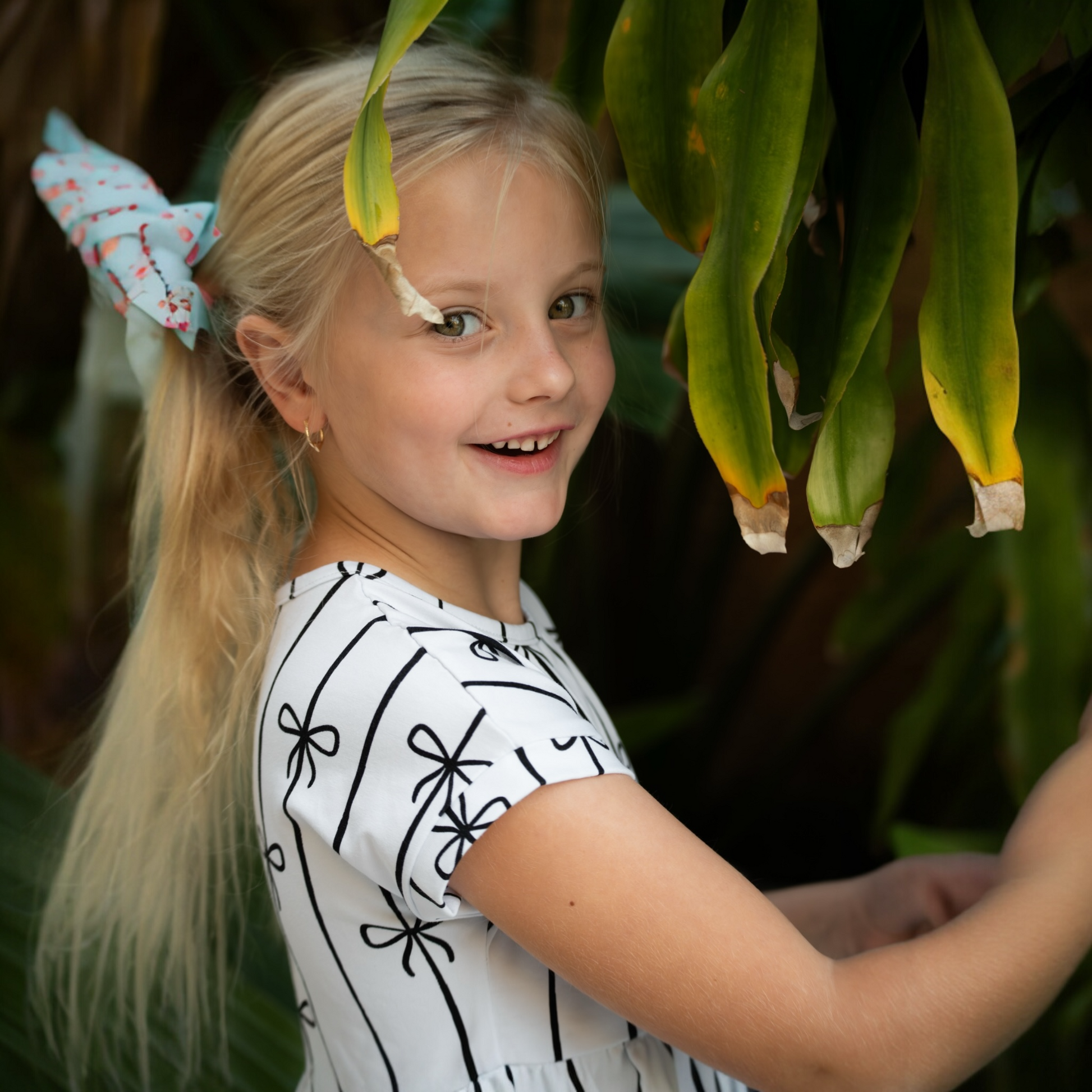 Simple, chic, and oh-so-sweet! This white dress features black vertical stripes adorned with dainty bow designs for the perfect mix of classic and playful. The soft, flowy fabric and twirl worthy skirt make it a comfy favorite for everyday wear or special outings. A timeless piece with a modern boutique twist!